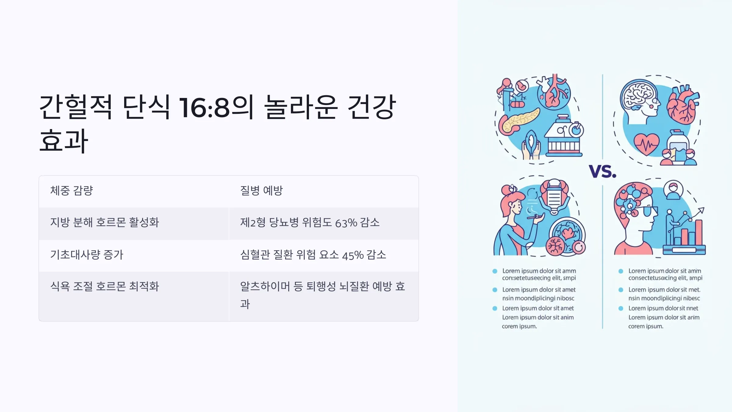특히 주목할 만한 점은 체중 감량에서도 일반적인 식단 조절보다 2배 이상 효과적이라는 것입니다. 현대인의 새로운 건강 혁명으로 떠오른 '간헐적 단식 16:8', 그 과학적 근거와 올바른 실천법에 대해 전문가의 시선으로 자세히 알아보겠습니다.